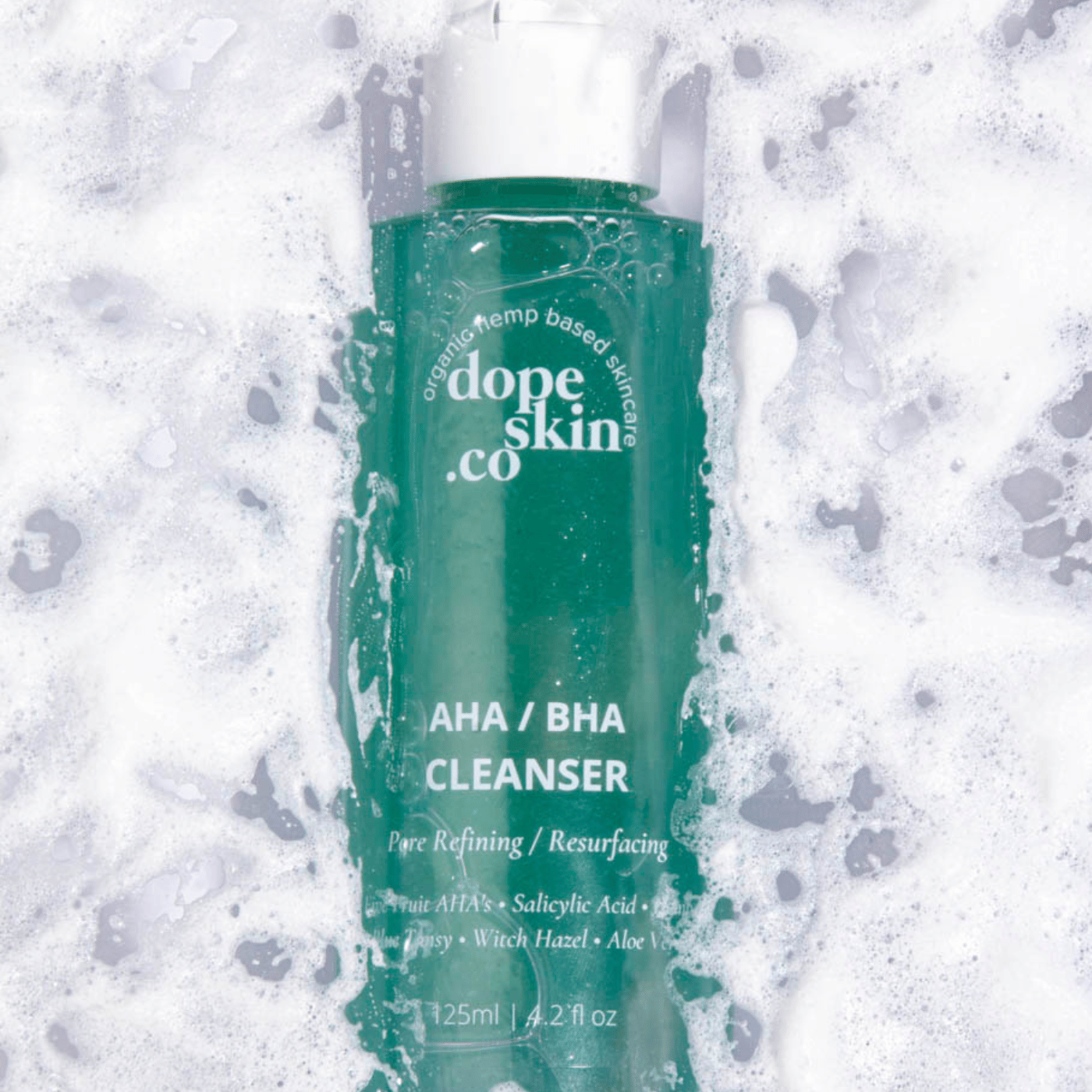 A gentle exfoliating gel cleanser with 8% five-fruit AHAs and 2% salicylic acid (BHA). Clears pores, smooths texture, and removes dull skin without stripping. Contains niacinamide, blue tansy, hemp, and witch hazel to soothe and balance. Light blue tansy scent. Clearer complexion within 14 days.